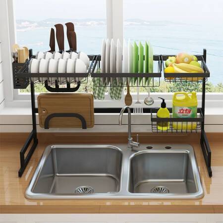 • يحتوي على (رف صحون، رف وعاء، حامل سكاكين، سلة فاكهة وخضروات، رف حامل غطاء الوعاء أو لوح تقطيع، سلة مربعة للمنظفات، حامل أدوات المائدة، 5 خطافات للاكواب)