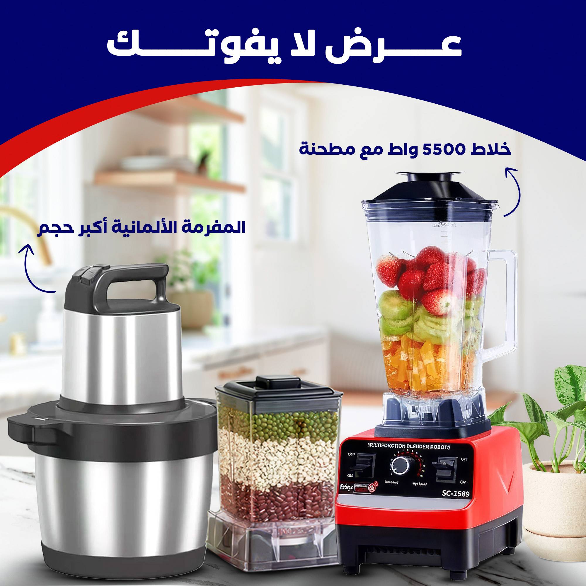 • مفرمة ألمانية كبيرة ٨ لتر وخلاط 5500 واط مع مطحنة، العرض اللي يغطي كل احتياجاتك.
