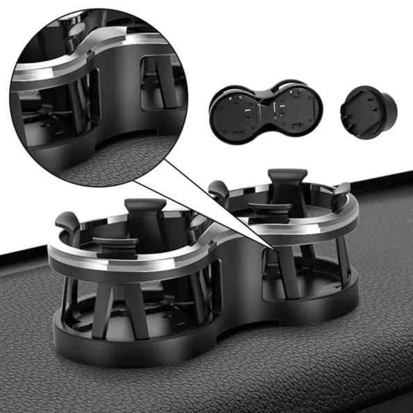 وفر مساحة في سيارتك وتجنب سقوط الأكواب، حامل كوب مزدوج بجودة عالية قوي ومتين، قاعدة قابلة للتعديل مزودة بمشبك مرن للتكيف مع حجم الكوب.