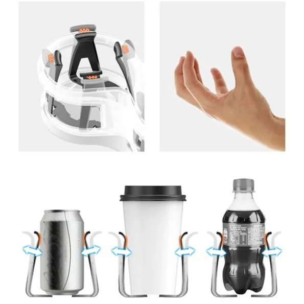 • تحتوي قاعدة الحامل على مشبك مرن قابل للتكيف، لتعديل الحجم ليناسب الكوب