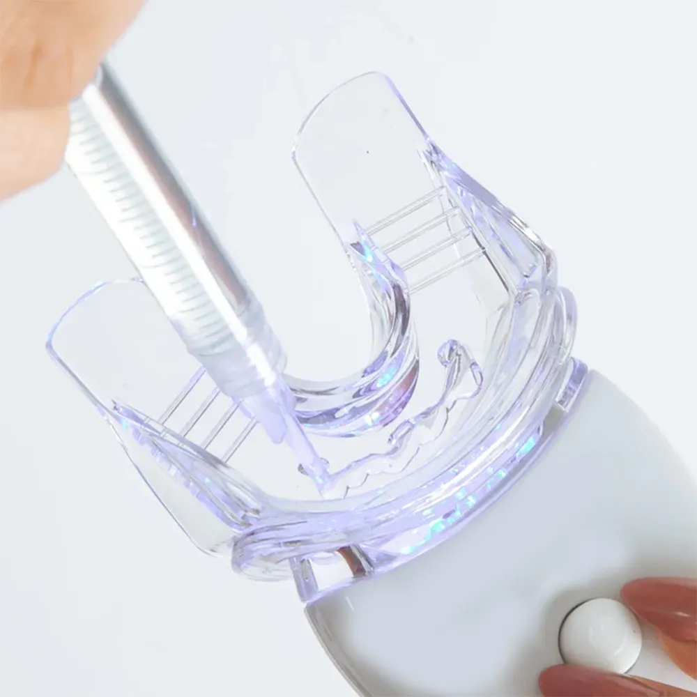 • يعمل جهاز LED على تنشيط جل التبييض بقوة إضافية لتسريع نتائج تبييض الأسنان