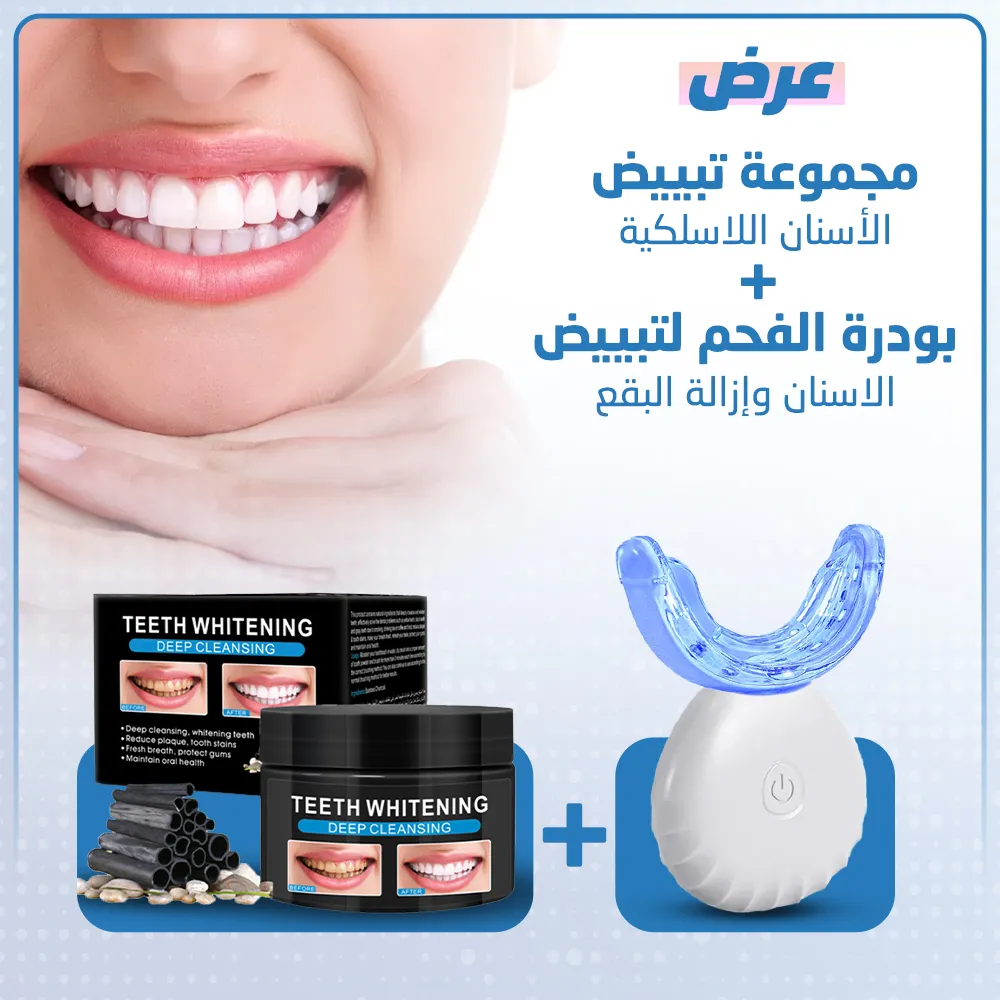مجموعة تبييض الأسنان اللاسلكية + بودرة الفحم لتبييض الاسنان وإزالة البقع