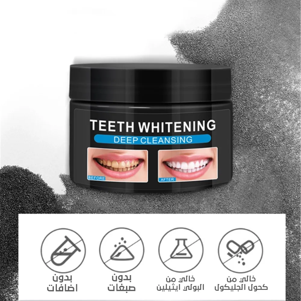 • *مميزات بودرة الفحم لتبييض الاسنان وإزالة البقع*