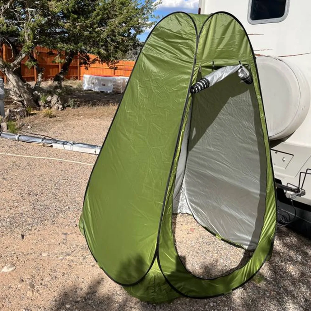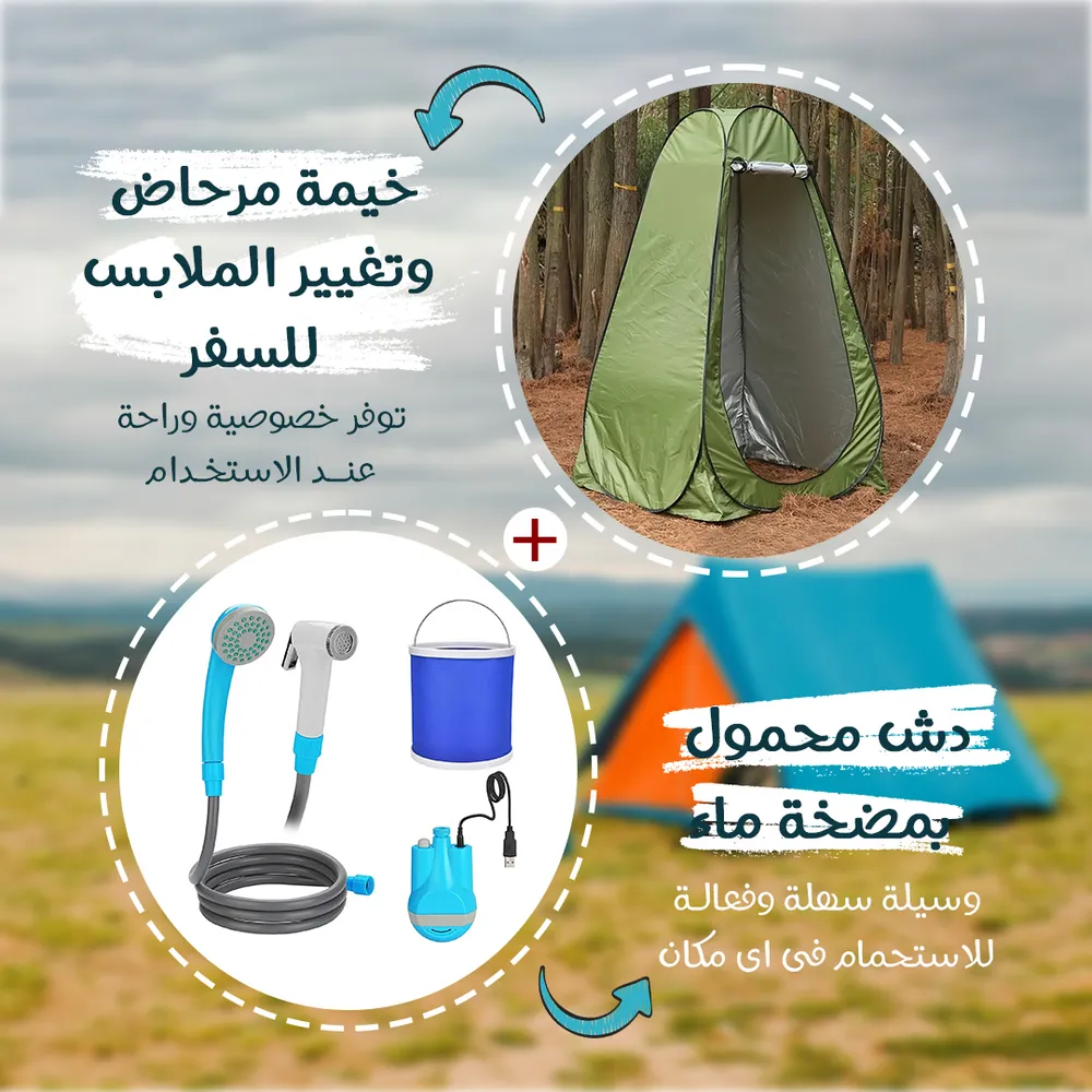 • احصل على تجربة سفر مريحة ومميزة مع هذه عرض حصري لخيمة مرحاض وتغيير الملابس للسفر + دش محمول.