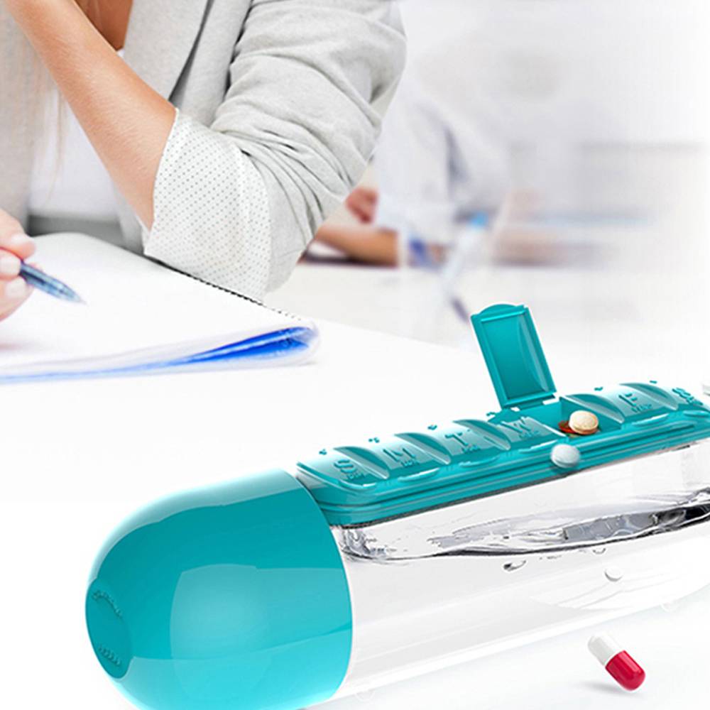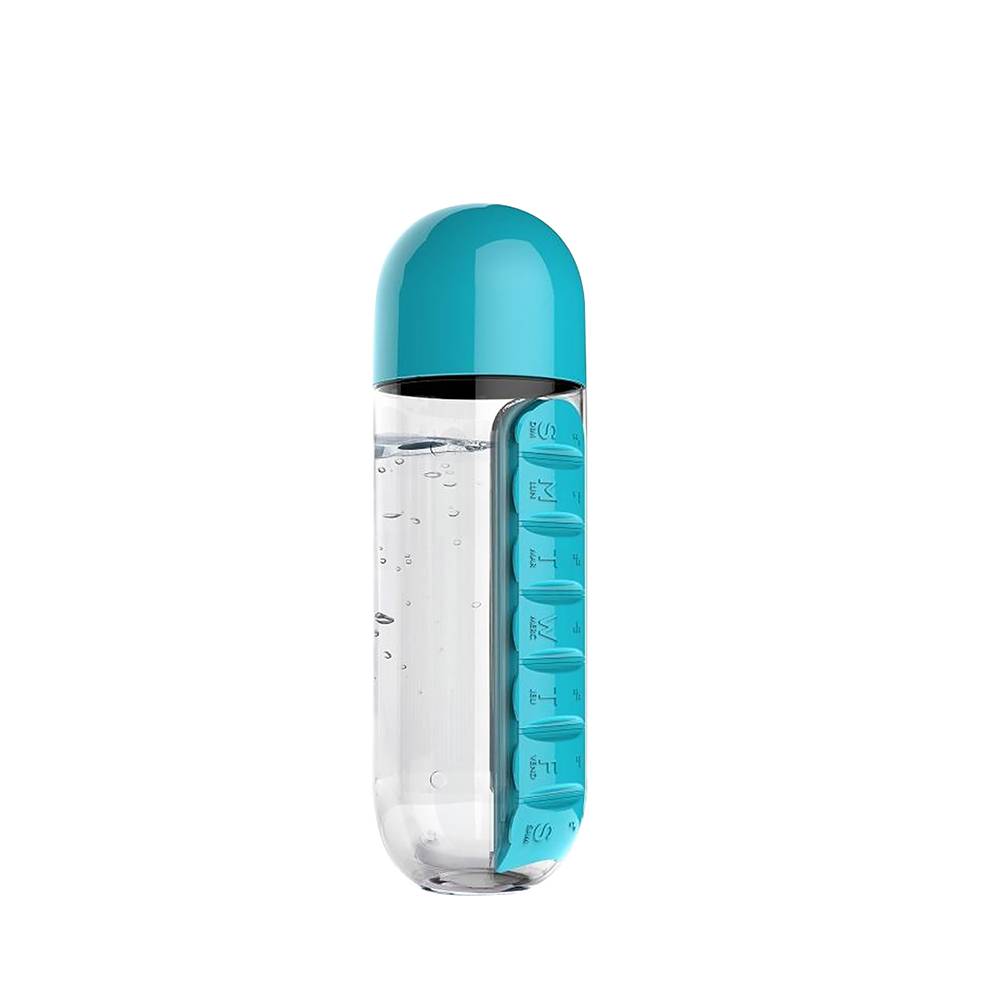 اجمع بين صندوق تخزين حبوب الدواء اليومي وزجاجة المياه وقم بتعبئة كل شيء في منتج واحد رائع ومريح.