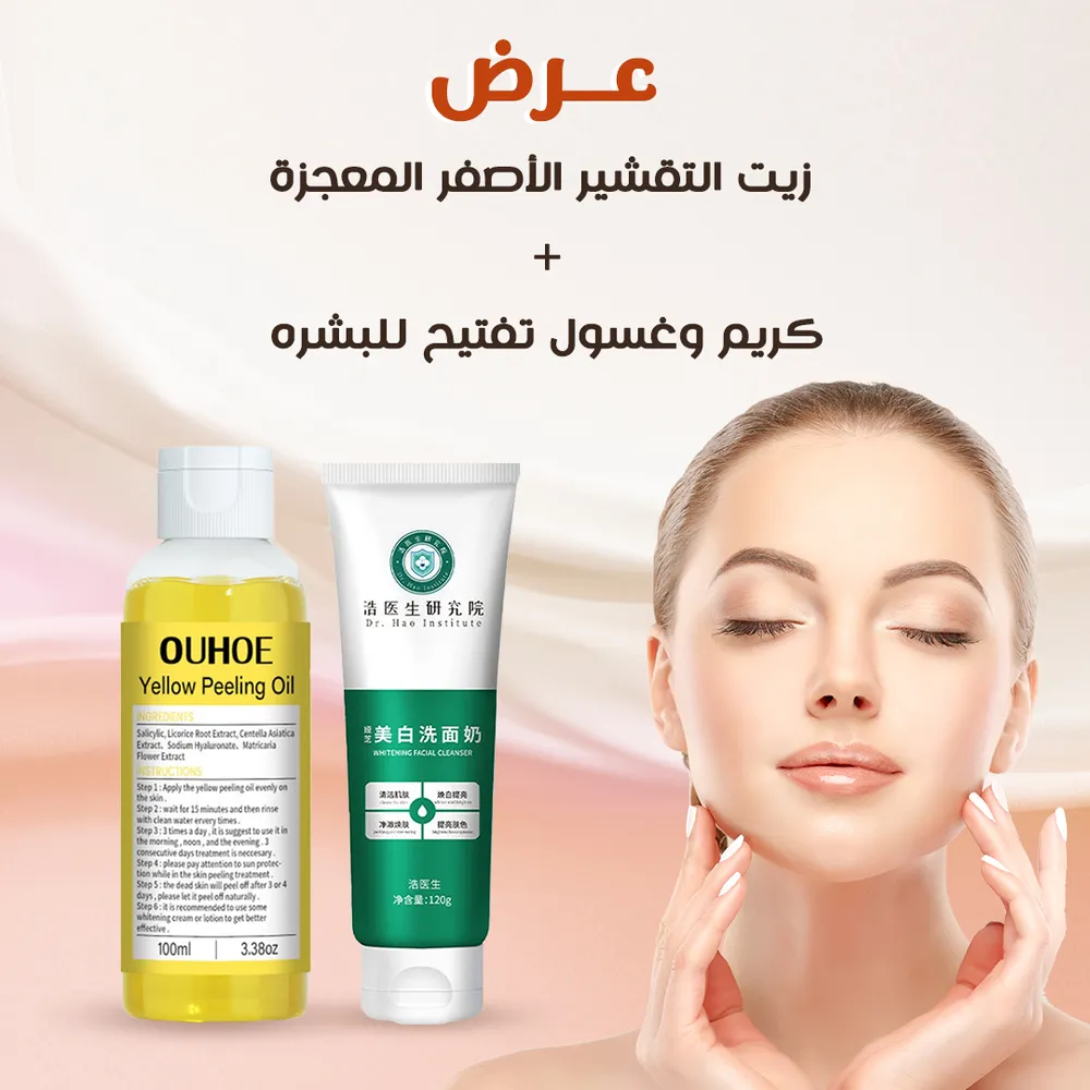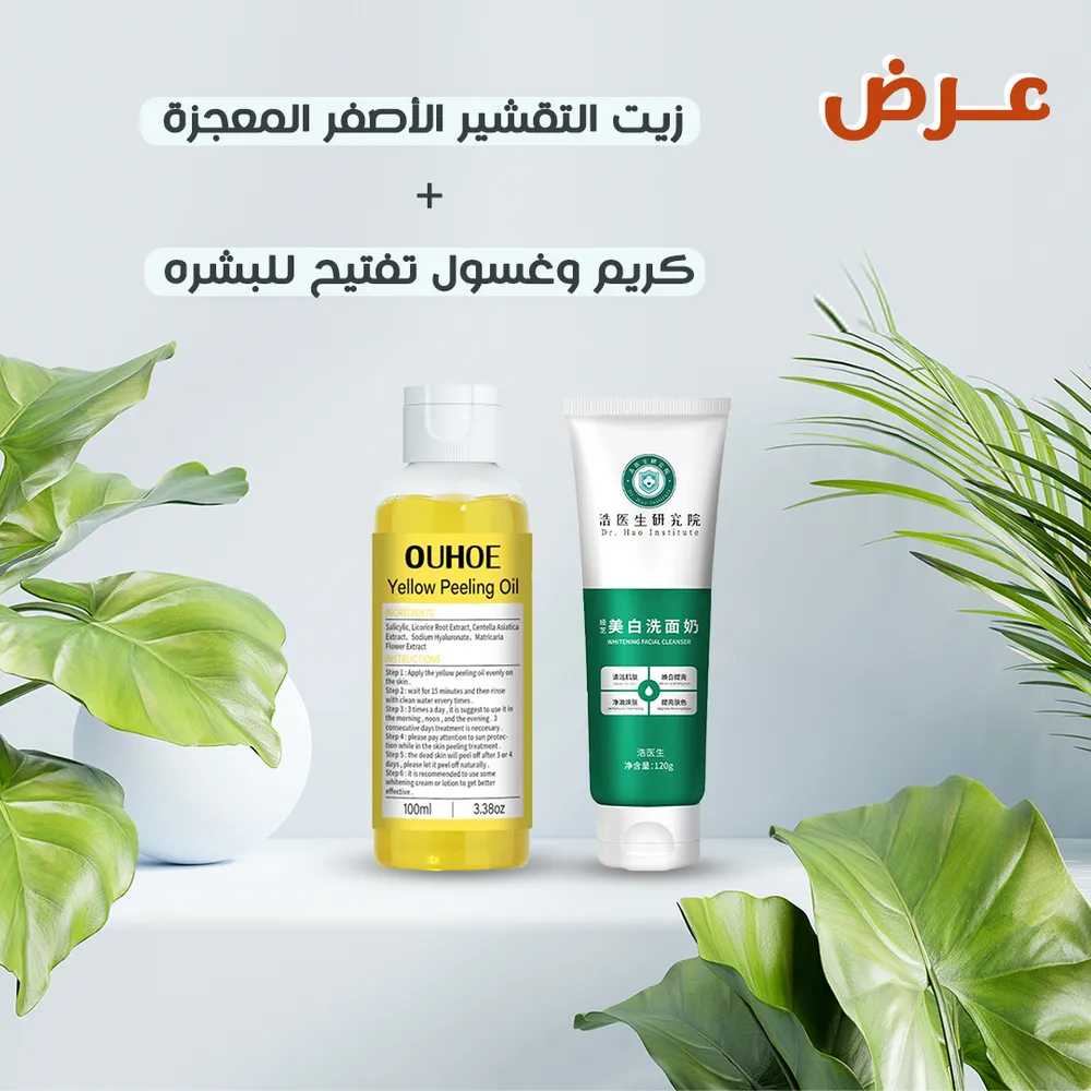 • اكتشفوا سرّ بشرة مشرقة وصحية مع عرض زيت التقشير الأصفر المعجزة + كريم وغسول تفتيح للبشرة.