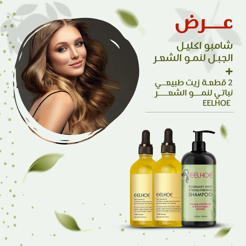 عرض شامبو اكليل الجبل لنمو الشعر + 2 قطعة زيت طبيعي نباتي لنمو الشعر EELHOE