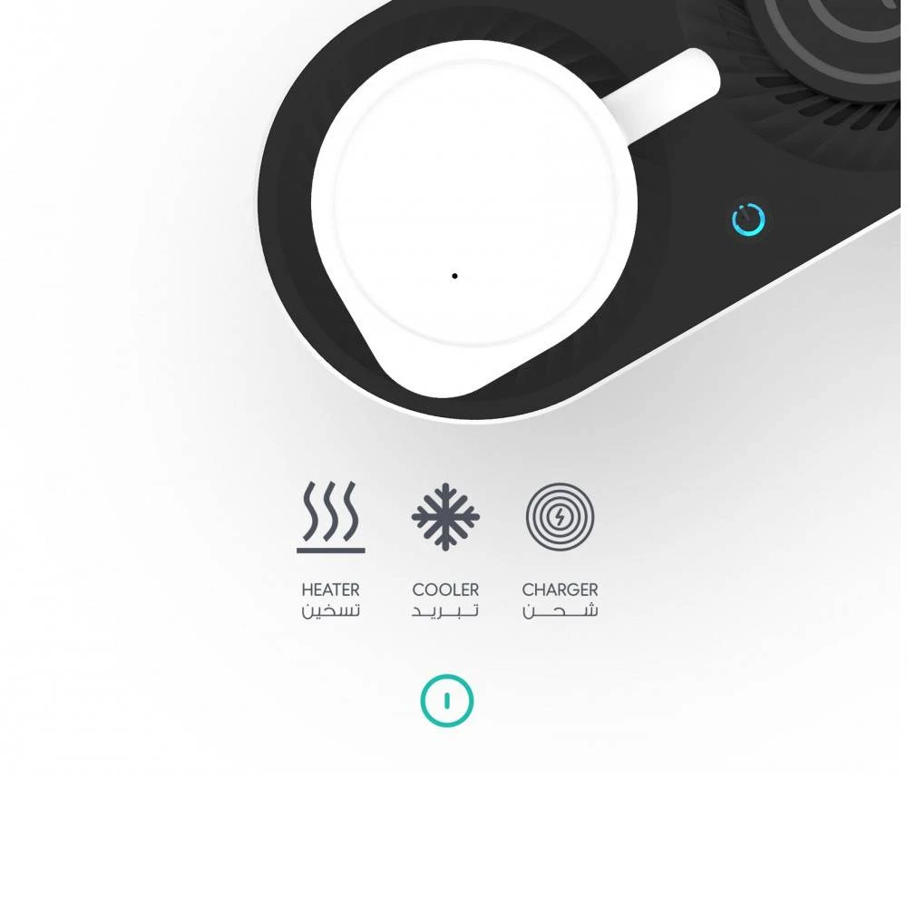 • 3 في 1، تحافظ على حرارة مشروبك، وتشحن جوالك والسماعات اللاسلكية، في وقت سريع.