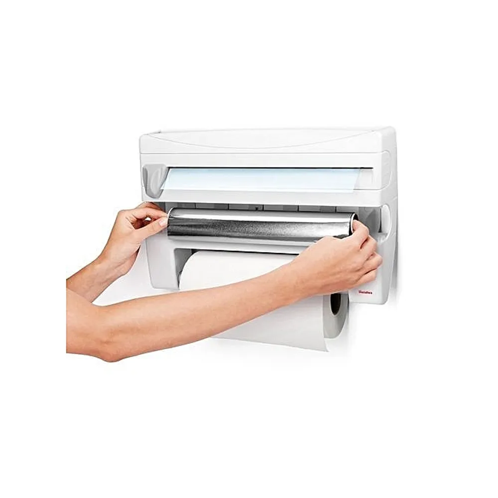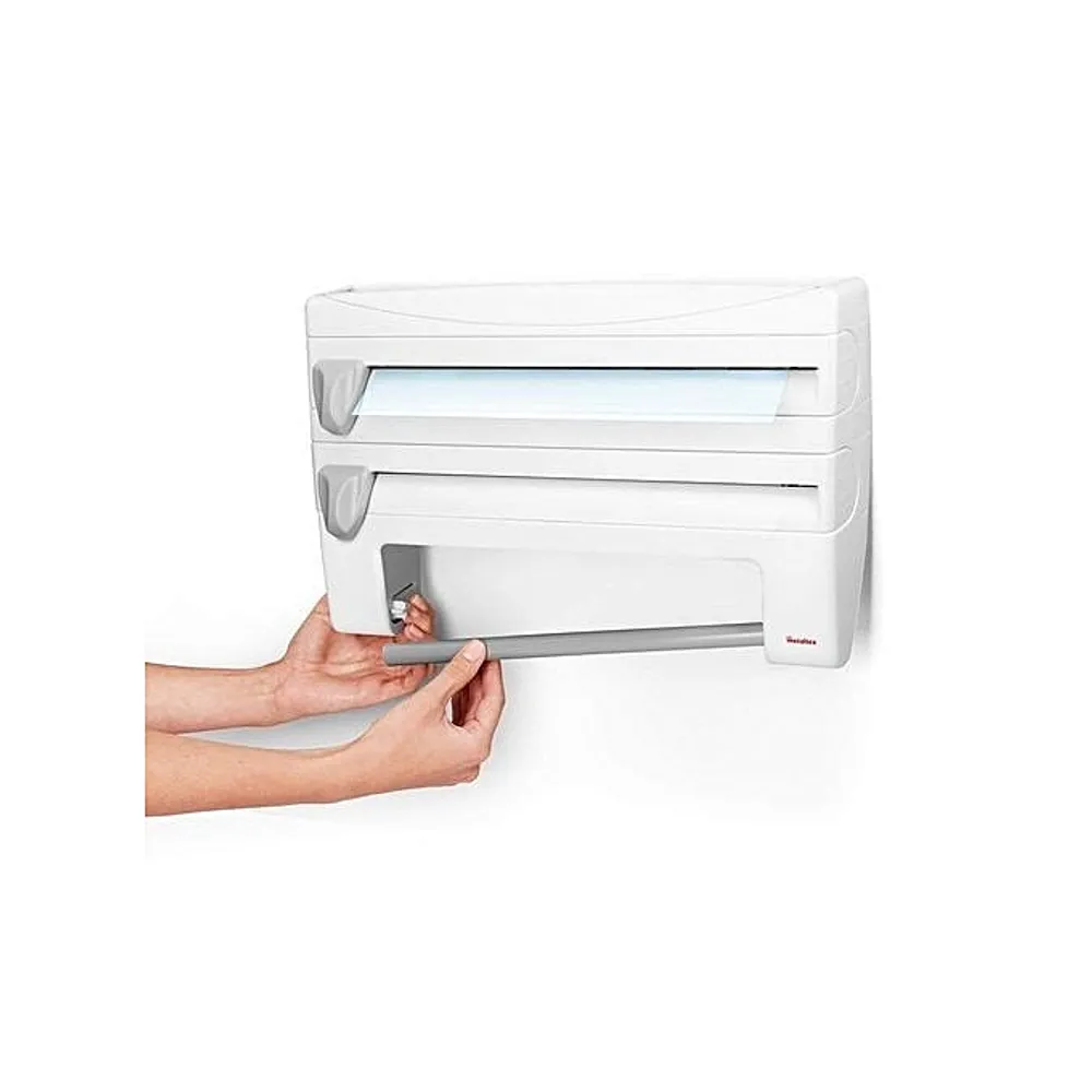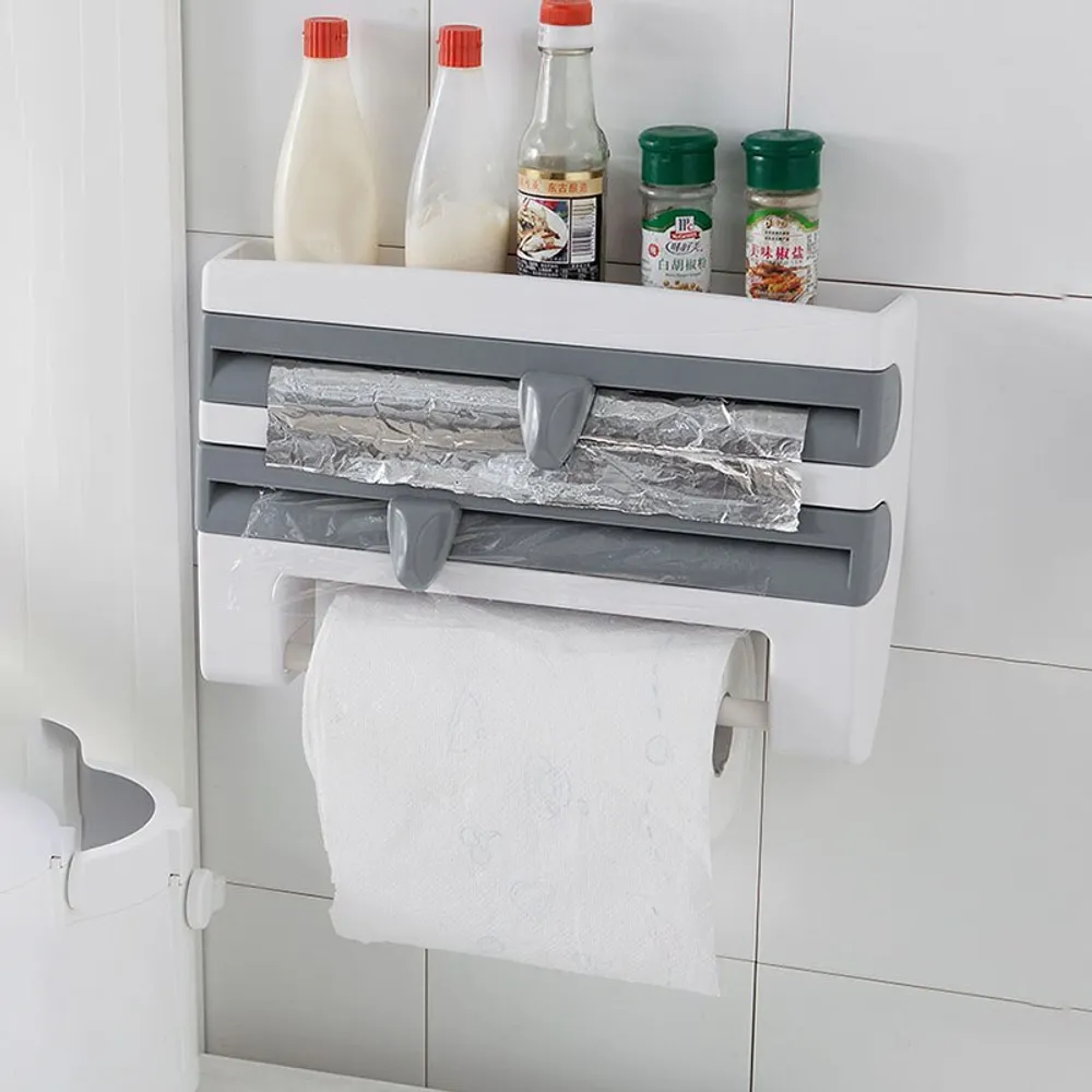 يوفر لك منظم اللف هذا طرقًا مختلفة لتنظيم الأغلفة البلاستيكية؛ يمكنك وضعه في الدرج أو تعليقه على الحائط؛ فتحة أكبر في المنتصف تجعل من السهل العثور على بداية اللفة