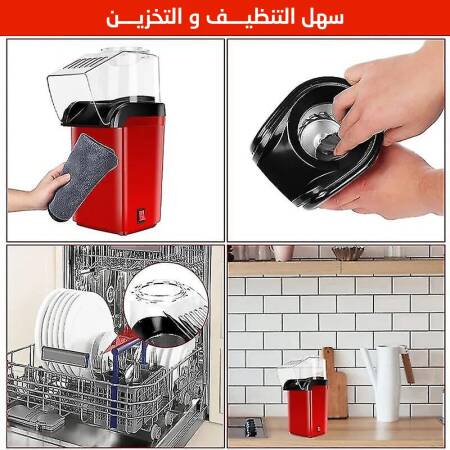 • يمكن لماكينة صنع الفشار الهوائية أن تعمل بدون زيت، باستخدام الهواء الساخن فقط لصنع فشار لذيذ منخفض السعرات الحرارية.