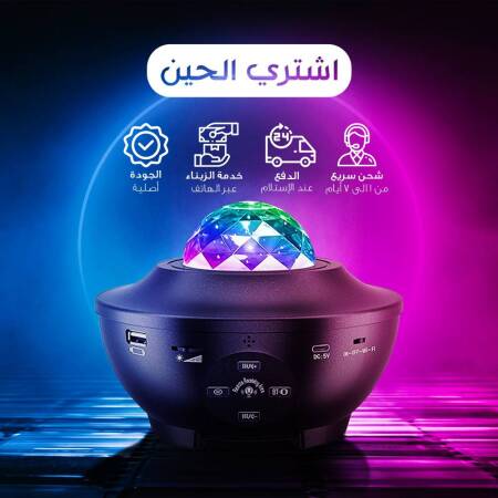 ديكور ومكبر صوت مميز بإضاءة النجوم والمجرات مع ومكبر صوت وجهاز تحكم عن بعد