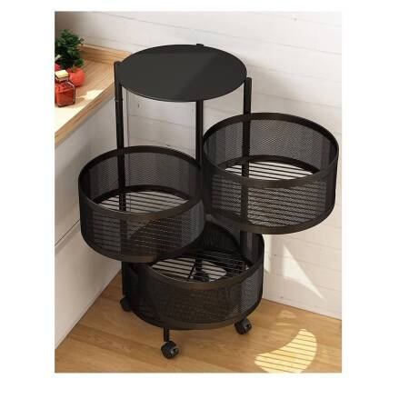 منظم تخزين اسود متعدد الاستخدامات مكون من ٣ طبقات يستخدم كسلة خضروات وفواكه او عربة لحمل وثائق المكتب او سلة للتخزين.