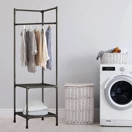 • يحتوي على رفين وقضبان لتعليق الملابس.